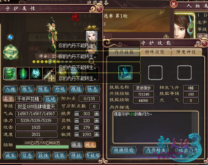 我有五个办法,步骤依次为:吐了重新吃——扔了重新买一个——重新买一个177级的——下号重上——不吃内丹