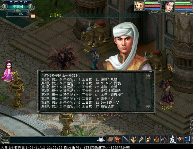 心情日记 今天沫沫队碰见的对手是来点队,很强也很熟 由于都熟悉对方的装备及宝宝,实力也相差不远,第一场打的有点惊心, 还好咱们的指挥风骚哥稳住,沉稳的控制抓回节奏,最后有惊无险的度过了 第二场,有了第一场的教训改变打法,使对方无力回天之后,嘿嘿,开始打友谊赛啦 (原谅沫沫无法详细解说,我怕被封杀的,哈哈) ----月舞 照例,一打完比赛沫沫立马来到丹书查看战况,没想到碰见了小美姐的老公胖哥 原来今天小美姐有事上不来,要求一个月上不了几次的胖哥务必上线 于是沫沫又开始无耻的求果照求真相了 最后证明胖哥是大忽悠,证据如下: (龙族°尐羙——胖哥) 四联宝贝默小沫 :循环赛 打的激烈么 小美姐